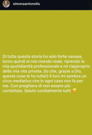 Intanto Simona Cannata sbotta sui social: “Circo mediatico, ho la nausea!”