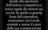 Il motivo per cui Fedez attacca Serena è principalmente la giusta attenzione che Serena sta dando alla questione sull’utilizzo compulsivo e senza regole dei minori sui social. […] Posso dire con assoluta certezza che se avessi ripreso in video e pubblicato ogni singolo momento della vita di mio figlio, dall’ecografia ai suoi capricci, ai suoi momenti di gioco e li avessi sbattuti ogni giorno sui social, tv, e non so che altro, oggi mio figlio sarebbe molto inca**ato con me.