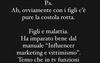 Fateci caso, quell/i che “io sono madre”, “io sono mamma”, “i figli non si toccano”, sono sempre le persone più subdole perché non sono capaci di difendersi senza schermarsi. E si schermano dietro la maternità o la paternità perché sanno, subdolamente, che crea empatia. La verità è che usano figli come scudi umani e in questo senso sono ben lontani da preoccuparsi di loro. Sono preoccupati solo della propria incolumità.