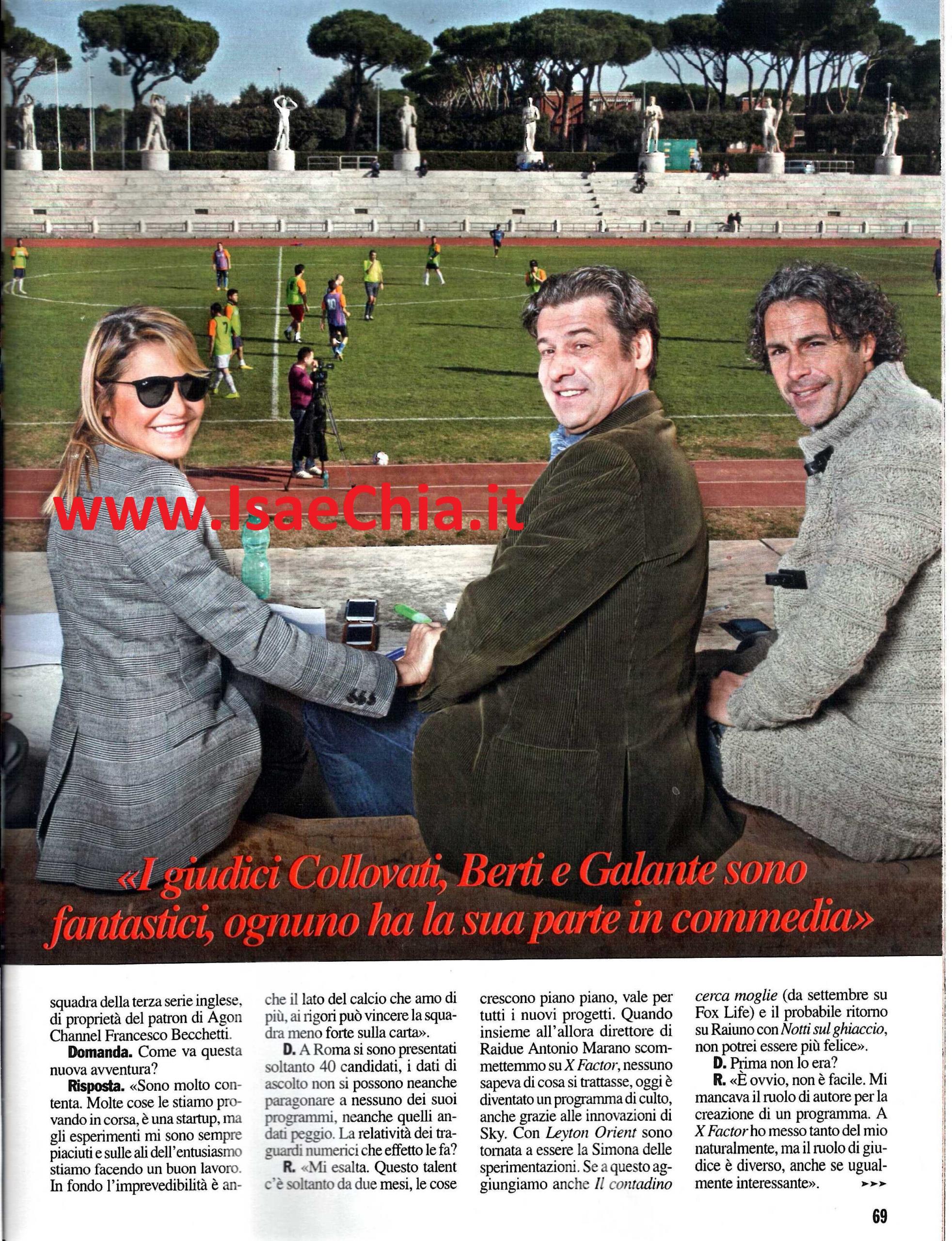 Dopo Mai dire gol, Quelli che il calcio e Cielo che gol, Simona Ventura è tornata in tv col suo primo amore, il calcio: da dicembre è su Agon Channel con Leyton Orient, un talent in cui, insieme a tre esperti, seleziona 17 aspiranti calciatori da inviare a Londra. Obiettivo? Regalare a uno di loro un contratto con il Leyton Orient, squadra di proprietà del patron della rete albanese. “Sono molto contenta, ma molte cose le siamo provando in corsa; gli esperimenti mi sono sempre piaciuti e sulle ali dell’entusiasmo stiamo facendo un buon lavoro“. Tuttavia, ai provini di Roma si sono presentati 40 candidati e gli ascolti non sono nemmeno lontanamente paragonabili a nessuno dei suoi programmi. Quando glielo si fa notare, risponde: “Mi esalta. Questo talent c’è solo da due mesi, le cose crescono pian piano e vale per tutti i nuovi progetti. Quando scommettemmo su X Factor, nessuno sapeva di cosa si trattasse, oggi è diventato un programma di culto. Con Leyton Orient sono tornata la Simona delle sperimentazioni. Se a questo aggiungiamo anche Il contadino cerca moglie, da settembre su Fox Life e il probabile ritorno su Raiuno con Notti sul ghiaccio, non potrei essere più felice. Mi mancava il ruolo di autore del programma. A X Factor ho messo tanto di mio, ma il ruolo di giudice è diverso, anche se ugualmente interessante“. Facendole notare la somiglianza con Campioni – Il sogno, il reality di calcio andato in onda anni fa su Canale 5, SuperSimo dice: “Non sono d’accordo: Campioni era fatto di una squadra che giocava in eccellenza. Invece per Leyton si allenano per una squadra di terza serie inglese, che equivale alla serie B italiana. Da Campioni sono usciti anche dei tronisti di Uomini e Donne, ma io sarei più contenta se proseguissero la carriera sportiva. Poi, se va male, alcuni di loro hanno tutti gli attributi per buttarsi nello spettacolo! Ce ne sono diversi carini, che hanno il loro seguito: il pubblico femminile non è tagliato fuori!“. E, a proposito di programmi Mediaset, quando le si chiede del ritorno dell’Isola dei famosi, che lei ha condotto per quasi tutte le edizioni, risponde: “Sono gli 8 anni che hanno segnato alcuni dei momenti più belli e più brutti della mia vita. Ho dato tutto per quel programma, il sangue e la salute. Ora tento di fare cose sempre nuove, rischiando, ma facendolo prima degli altri. Non è vero che il primo nome fatto per condurre l’Isola sia stato il mio: Alessia Marcuzzi è perfetta per quel ruolo. Insomma, nessuna invidia: farò il tifo per lei e Alfonso Signorini, mio grande amico. A me piace il mio lavoro da “libera professionista”; sto bene con il mio compagno Gerò Carraro e i miei figli. Alla mia veneranda età sento di poter rischiare. Le prospettive dirigenziali sono rimaste, ma magari non sarà in questo Paese! Non mi vedo a 70 anni sullo schermo. Senza offesa per Raffaella Carrà: lei fa bene, la sua forza e la sua statura non si discutono. Le critiche per Forte forte forte? Come diceva mia nonna, essendo in cima alla montagna…prende tutti i venti!”