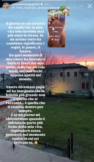Negli scorsi giorni il neo papà ha postato sulle sue storie Instagram una dolce dedica per il suo bambino appena nato: