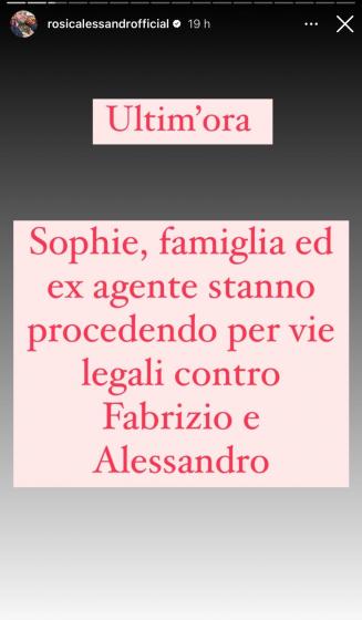 Ultim’ora. Sophie, famiglia ed ex agente stanno procedendo per vie legali contro Fabrizio e Alessandro.