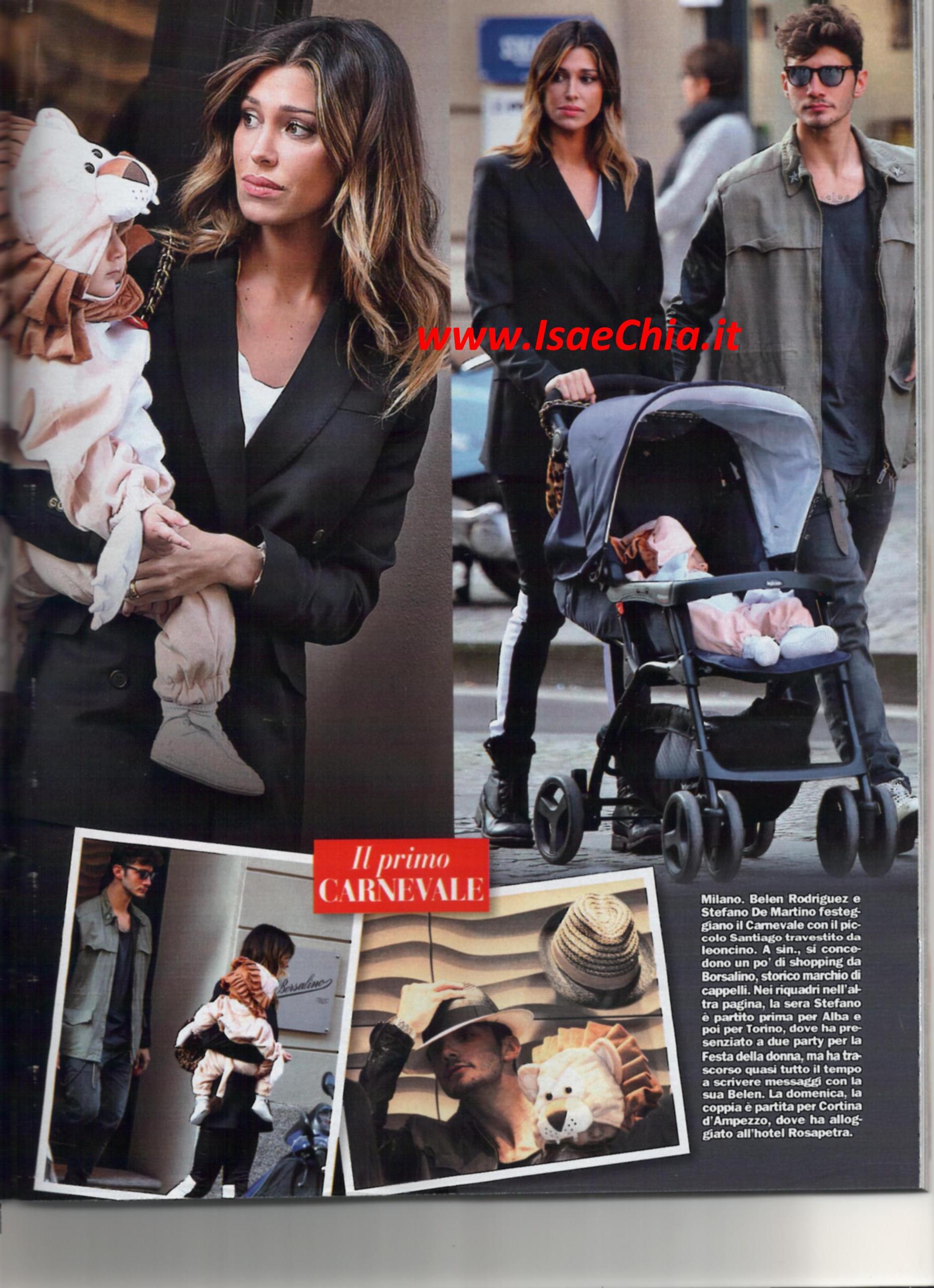 L’ex ballerino di Amici Stefano De Martino e sua moglie, la showgirl Belén Rodriguez, hanno portato in giro con il loro piccolo Santiago durante il giorno di Carnevale: per l’occasione il piccolo indossava un vestitino da leone. I due si sono poi fermati in un negozio Borsalini, dove Stefano ha provato dei cappelli dello storico marchio. Nel giorno della festa della donna, invece, si sono dovuti separare: il ballerino napoletano è partito prima per Alba e poi per Torino, dove era atteso a ben due party diversi. Ma, tra una foto con le fan e l’altra, ha messaggiato sempre con la sua unica donna: Belén. Così, per recuperare il tempo perduto, la domenica la coppia è partita per Cortina d’Ampezzo.