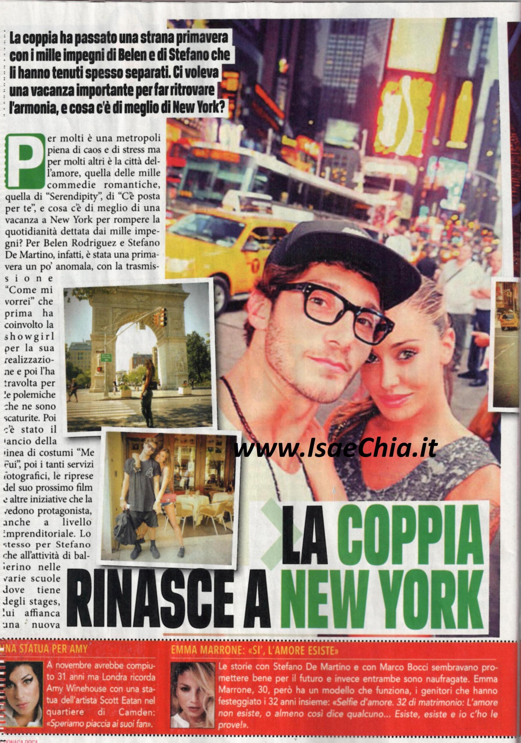 Per molti New York è la metropoli caotica e frenetica, ma la città americana è anche teatro di grandi storie d’amore. Per Belén Rodriguez e Stefano De Martino è stato così. Dopo una primavera un po’ anomala, durante la quale Belén ha affrontato il suo primo flop con il programma Come mi vorrei e poi una serie di polemiche, e un’estate piena di eventi, durante la quale l’ex ballerino di Amici è stato impegnatissimo tra stages di ballo, l’apertura di un ristorante a Milano e la carriera da modello, il rapporto tra i due rischiava di incrinarsi. Recentemente, infatti, Stefano aveva rivelato che da quando è nato il piccolo Santiago, la loro passione aveva subito un netto calo. Era proprio necessaria, dunque, una bella vacanza per ripartire da capo: la bella argentina e il suo maritino napoletano hanno organizzato una vacanza lampo nella Grande Mela, dove potevano andare in giro senza essere riconosciuti, che Belén ha prontamente testimoniato tramite le foto che posta sui social. Secondo il settimanale Gente, durante questa seconda luna di miele, Belén sarebbe rimasta nuovamente incinta, ma l’ex naufraga ha già smentito: “Ringrazio tutti per gli auguri, ma non sono ancora incinta!” ha scritto lei. Non lo è “ancora”, perché nei suoi programmi un fratellino o una sorellina per Santiago c’è…ma dopo Tu sì que vales: il nuovo programma di Mediaset, nel quale Belén riprende il ruolo che aveva in Italia’s got talent, è proprio l’occasione giusta per riprendersi dopo il flop di Come mi vorrei.