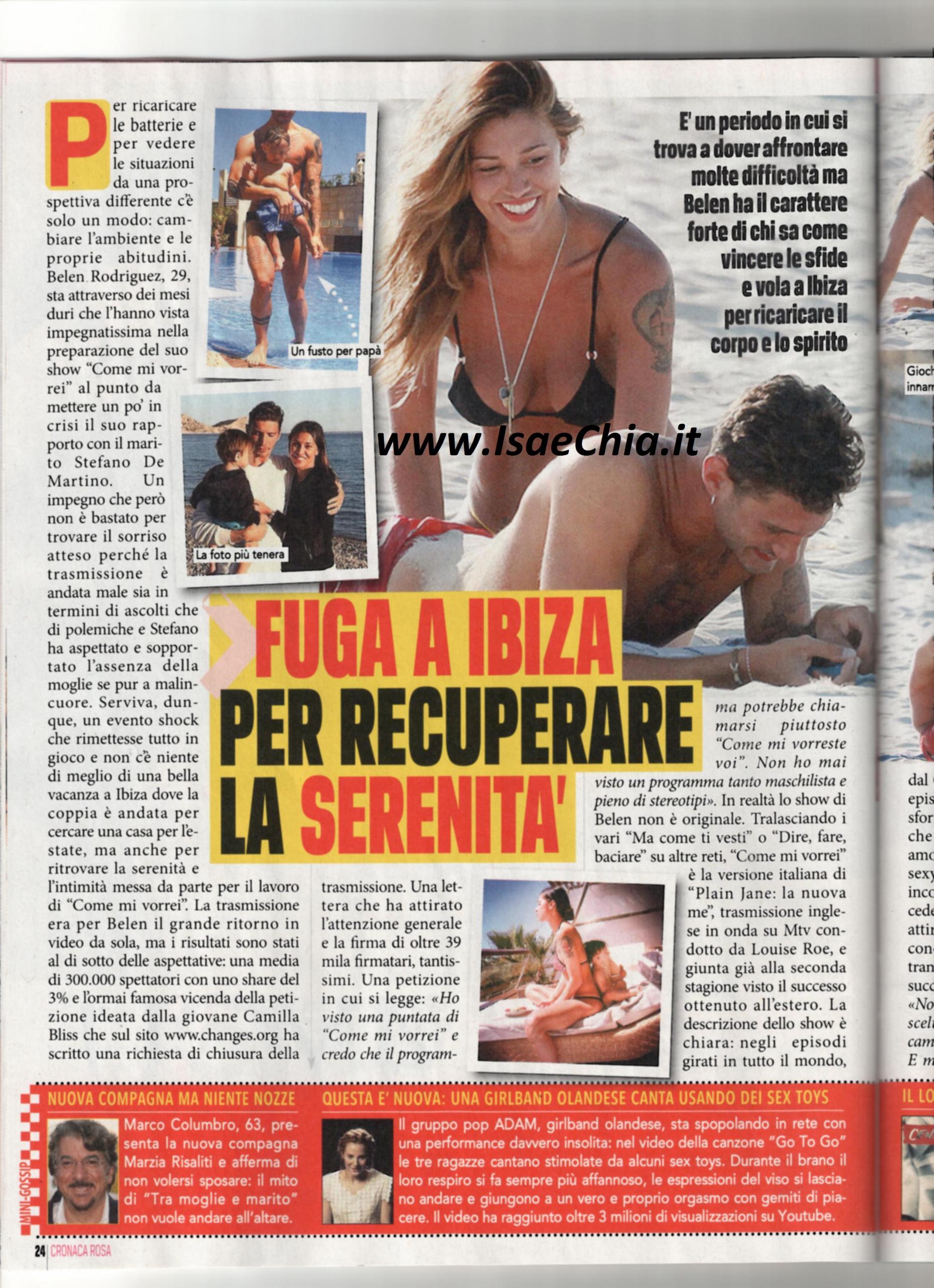 Ma sì, anche perché Belén non permetterebbe altro! I due, comunque, continuano a smentire qualsiasi voce di una loro crisi e lo dimostrano anche nei fatti. Eccoli in vacanza ad Ibiza: lei si era dedicata un po’ troppo al suo programma (da alcuni considerato un flop) Come mi vorrei, e lui ha sopportato la sua assenza…Al punto tale da abbandonarsi ad una battuta: “Io cancellerei il titolo Come mi vorrei e aggiungerei Come mi vorrei sc….. mia moglie!”. Beh, la vacanza ad Ibiza era d’obbligo per recuperare il tempo perso!
