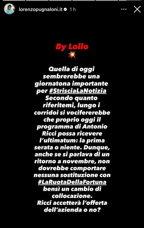 Quella di oggi sembrerebbe una giornata importante per Striscia la Notizia. Secondo quanto riferitemi, lungo i corridoi si vociterebbe che proprio oggi il programma di Antonio Ricci possa ricevere l’ultimatum: la prima serata o niente.