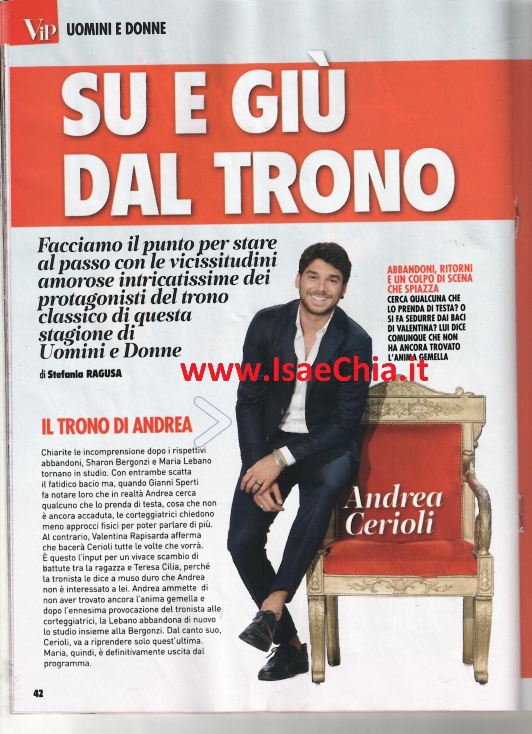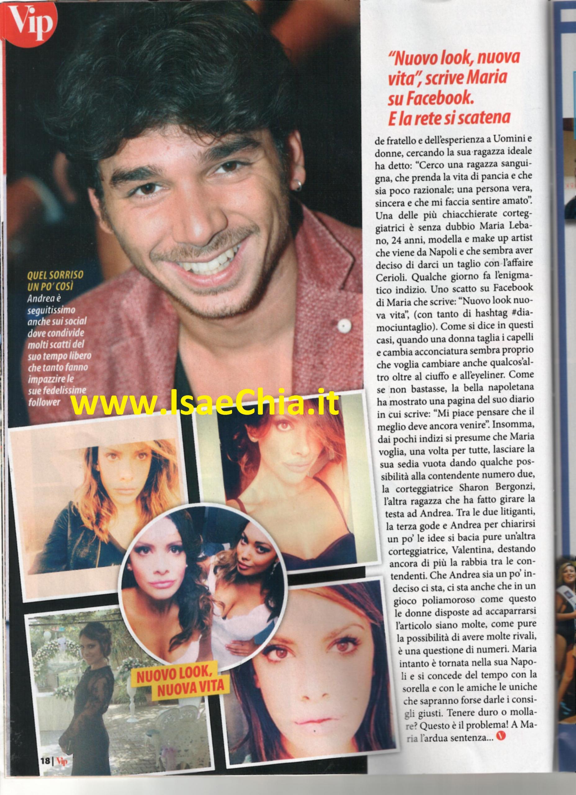 Siamo ormai a metà del percorso iniziato a settembre dai tronisti di Uomini e donne e si possono fare i primi bilanci e le prime previsioni. All’inizio tra le preferite di Andrea Cerioli spiccava, oltre a Sharon Bergonzi, la bella modella e make-up artist napoletana Maria Lebano. Ma, dopo una seria discussione, lei è uscita dagli studi e non vi ha più fatto ritorno. In un primo momento, ha commentato così sui social: “Nuovo look, nuova vita, #diamociuntaglio. In seguito, ha dato all’ex gieffino la responsabilità della fine della loro conoscenza. Nel frattempo, tra le due litiganti, la terza gode: un’altra corteggiatrice, Valentina Rapisarda, ha conquistato Andrea baciandolo in esterna e afferma che lo bacerà tutte le volte che vorrà. L’opinionista Gianni Sperti sottolinea la dichiarazione di Andrea, “Ne cerco una che mi prende di testa”, ipotizzando che la scelta…non sia ancora arrivata!