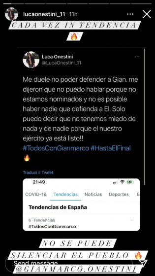 La sua reazione ha stupito molto il pubblico da casa, abituato a vederlo sempre allegro e sorridente. Dopo le immagini andate in onda il popolo di Twitter ha lanciato l’hashtag #TodosConGianmarco che ha raggiunto prima la sesta e in seguito la quarta posizione in tendenza.