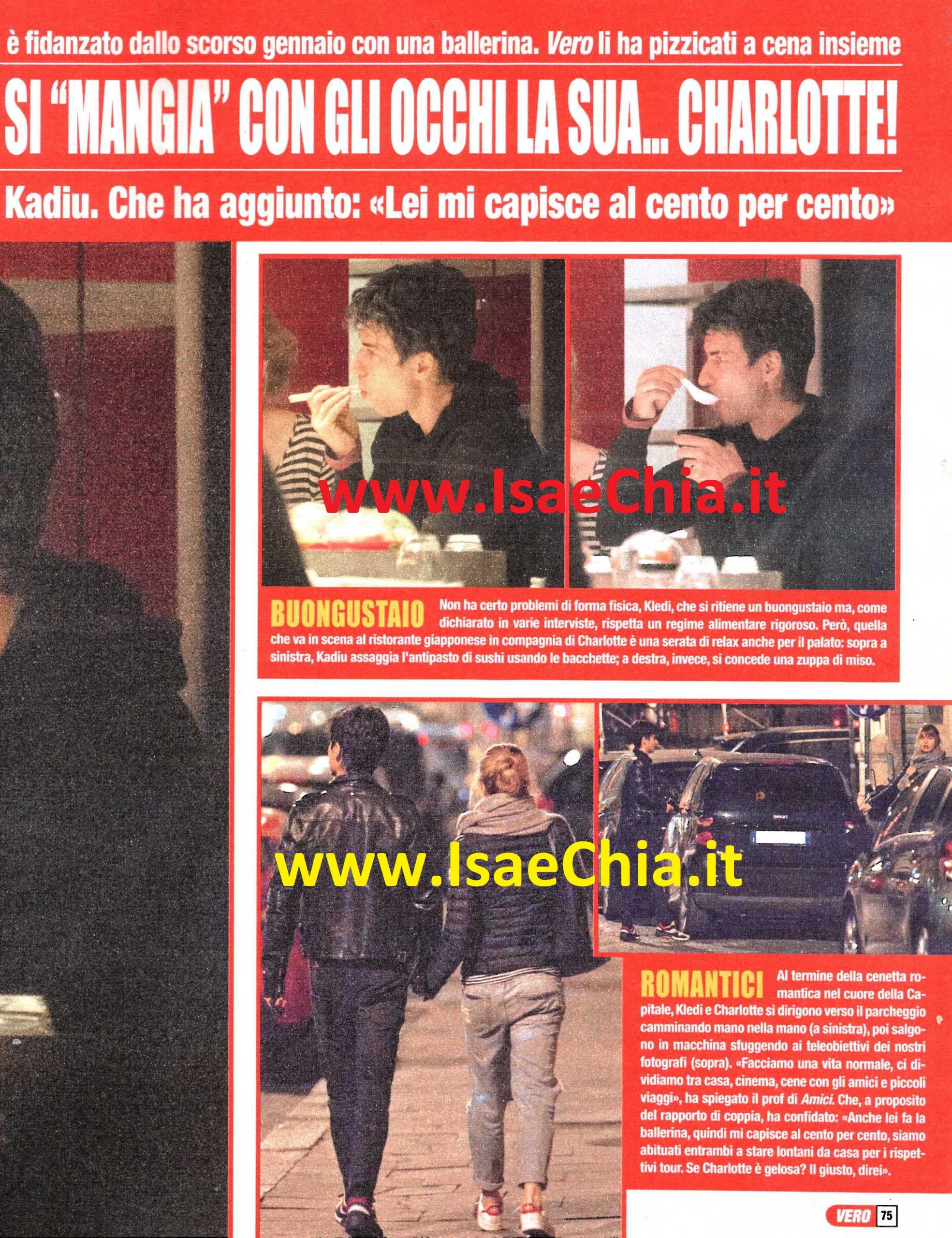 Il ballerino Kledi Kadiu è stato scoperto anni fa ormai da Maria De Filippi, che lo scelse come ballerino professionista ad Amici. Da allora, il bell’albanese ha sempre riscosso un gran successo con le donne e a volte ha alimentato il gossip con le sue storie, tutte più o meno brevi. Tuttavia, qualche tempo fa, superata la soglia dei 40, il ballerino ha ammesso di aver trovato una donna che gli ha fatto mettere la testa a posto (QUI per rileggere l’articolo). Per lui, infatti, si tratta di un periodo d’oro su tutti i fronti: su quello professionale, è stato “promosso” a maestro di danza, su quello sentimentale è sereno con la ballerina Charlotte, con cui sta da gennaio. Eccoli, infatti, a cena insieme in un ristorante giapponese a Roma. I paparazzi li colgono in alcuni momenti d’intimità, ad esempio quando lui si avvicina al collo di lei per baciarlo. E poi, nonostante dichiari di sottoporsi ad un regime alimentare rigoroso, Kledi si gode la serata “relax” e non si risparmia il buon cibo: eccolo, infatti, mentre, tra uno sguardo d’amore e l’altro, assaggia l’antipasto di sushi con le bacchette. Infine, terminata la cenetta, i due escono dal locale e si incamminano, mano nella mano, verso l’auto. “Facciamo una vita normale, ci dividiamo tra casa, cinema, cene con gli amici e piccoli viaggi. Anche lei è una ballerina, quindi mi capisce al 100% e siamo abituati entrambi a stare lontani da casa per i rispettivi tour. Charlotte gelosa? Il giusto, direi!” ha dichiarato lui sul suo nuovo amore.