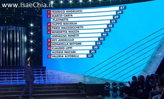 Secondo posto, a pari merito, per Marco Carta nei panni di Riccardo Cocciante con Bella Senz’Anima e Platinette che si è cimentato con What A Wonderful World di Louis Armstrong: