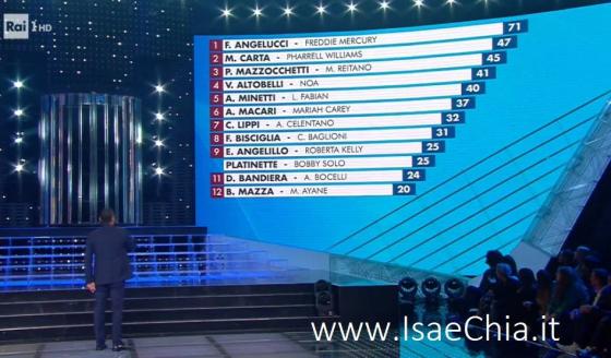 Da menzionare, inoltre, anche le performance di Alessia Macari nei panni di Mariah Carey (QUI il video), Filippo Bisciglia in quelli di Claudio Baglioni (QUI il video), e Annalisa Minetti che si è cimentata con il difficilissimo brano Adagio di Lara Fabian (QUI il video).