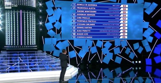 A seguire la classifica finale della seconda puntata di Tale e quale show: