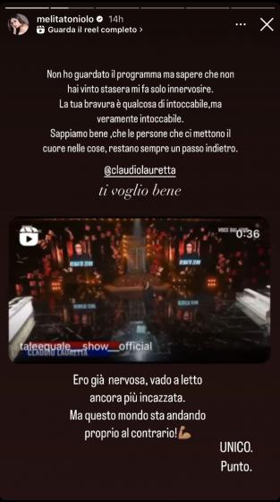 Melita Toniolo dunque sembrerebbe essere un’ammiratrice di Lauretta, uno dei concorrenti più apprezzati di questa nuova edizione dello show condotto da Carlo Conti.