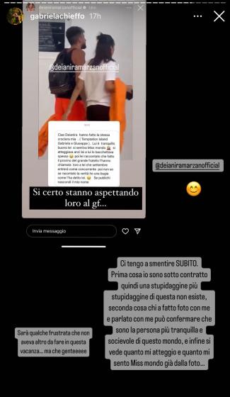 Nelle scorse ore ha iniziato a girare un rumor che vedrebbe l’iconica protagonista della decima edizione di Temptation Island fra i prossimi concorrenti del reality show di Alfonso Signorini. Stando a una segnalazione arrivata in direct a Deianira Marzano, Gabriela avrebbe superato i casting. A svelare l’indiscrezione sarebbe stata proprio la giovane 19enne mentre si trovava in crociera con Giuseppe Ferrara: