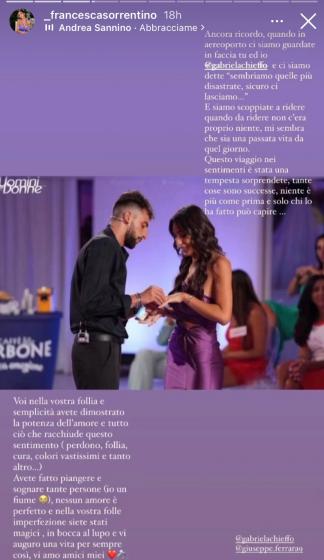 A congratularsi con loro anche Francesca Sorrentino, una delle protagoniste più amate di Temptation Island. La ragazza ha rivolto alla coppia un dolce pensiero: