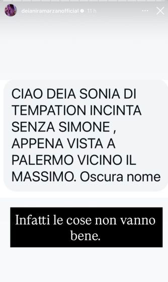 Una segnalazione arrivata a Deianira Marzano, infatti, racconta di aver visto Sonia da sola a Palermo e la stessa esperta di gossip ha confermato che le cose tra loro non vanno bene: