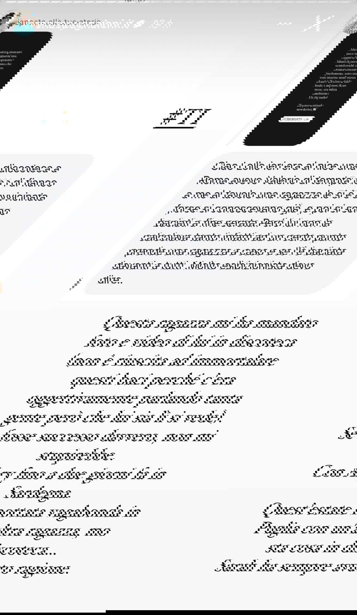 Ciao Lollo ieri era al nice una discoteca a Roma avevo Valerio di Temptation di fianco a me al tavolo una ragazza le si è avvicinata, forse si conoscevano già e poi si sono baciati a fine serata. Però lui non la calcolava tanto infatti ad un certo punto prende una ragazza a caso e se l’è baciata davanti a tutti. Molto esibizionista devo dire…
