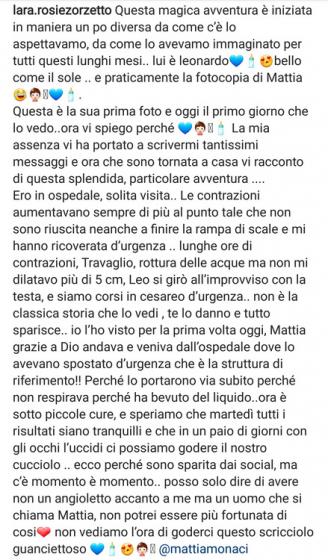 Solo oggi, però, Lara ha potuto davvero tenerlo e abbracciarlo, come lei stessa ha raccontato su Instagram:
