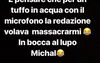 Grande solidarietà, invece, è stata mostrata dal popolo del web a Lara Rosie Zorzetto, a causa del comportamento decisamente scorretto che le ha riservato il fidanzato Michael De Giorgio. Dopo aver visto e sentito diverse critiche che le sono state mosse dal fidanzato, la ragazza si è lasciata andare alle attenzioni del tentatore Giuseppe Santamaria, scatenando l’ira funesta del compagno, che ha addirittura rotto il tablet della redazione attraverso il quale ha visto i filmati di Lara, salvo poi dedicarle una scritta col ketchup su un lenzuolo. A commentare la reazione focosa di lui, sempre il Panico, l’ex tentatrice Antonella Fiordelisi, l’ex protagonista Flavio Zerella e la Affi Fella, mentre l’ex tronista Sonia Lorenzini ha sorriso per le uscire della Zorzetto sempre molto rappresentative: