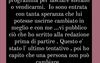 Non capivo che si comportava così perché mi tradiva come se non esistessi. Doveva lasciarmi lui quando mi ha tradita per la prima volta invece di tornare a casa e dormire nel mio letto per anni. Poi io sarei debole… forse ero la comodità e la sicurezza… Non pubblico il video con tutte le foto che ho mandato perché ho un’altra persona accanto e non mi pare il caso. Ma questi messaggi non mi sembrano di una ragazza che vuole vendicarsi. Non credo di essere entrata per vendetta scrivendo queste cose. Questo è solo per mettere in chiaro la mia posizione. Da donna innamorata ci ho sperato fino all’ultimo. E’ andata come doveva andare. Credo di essermi salvata da una vita di tradimenti e bugie.