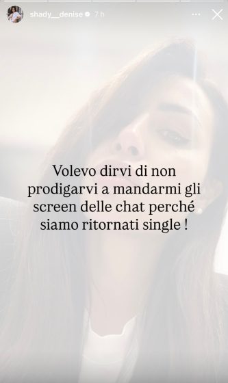 Proprio quest’ultima, però, nelle scorse ore ha rivelato di essere tornata single, svelando così di aver messo fine alla frequentazione con Davide e tramite le sue storie Instagram ha chiesto che non le vengano più mandati screen e messaggi che vedono come protagonista proprio la sua ex frequentazione: