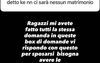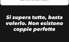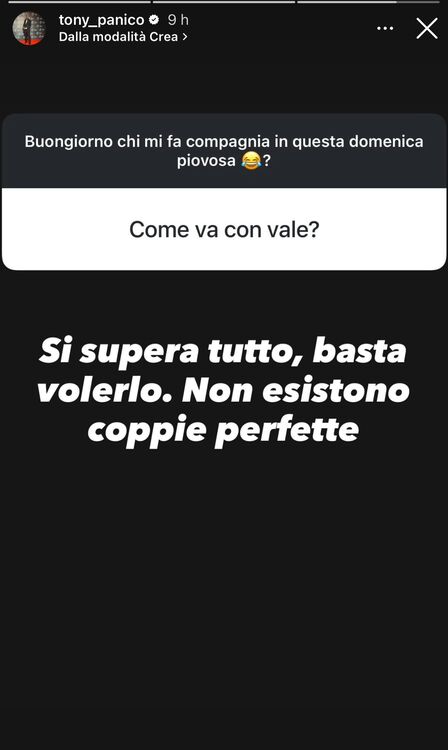 Ragazzi, mi avete fatto tutti la stessa domanda in questo box domande. Vi rispondo con questo: per sposarsi bisogna avere le basi in tutto. Se quelle mancano è inutile sposarsi. (…) Come vanno le cose con Valentina? Si supera tutto, basta volerlo. Non esistono coppie perfette.
