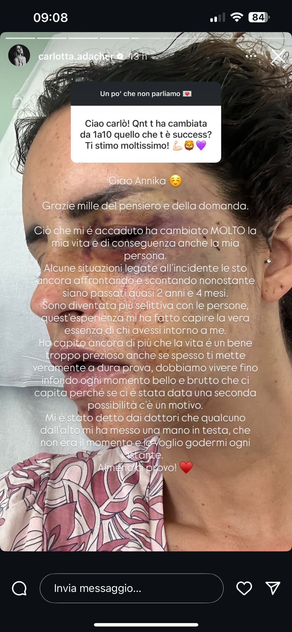 Carlotta ha poi spiegato di essere cambiata molto dopo l’incidente: