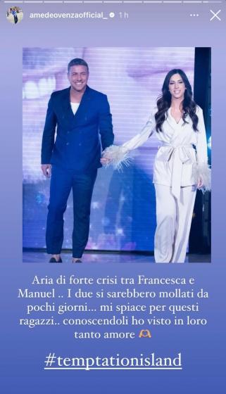 Stando a un’indiscrezione trapelata da Amedeo Venza in una storia pubblicata sul suo profilo Instagram, i due starebbero attraversando una forte crisi: