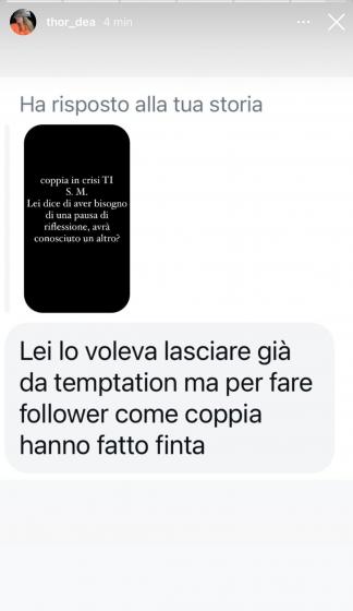Lei lo voleva lasciare già da Temptation ma per fare follower come coppia hanno fatto finta.