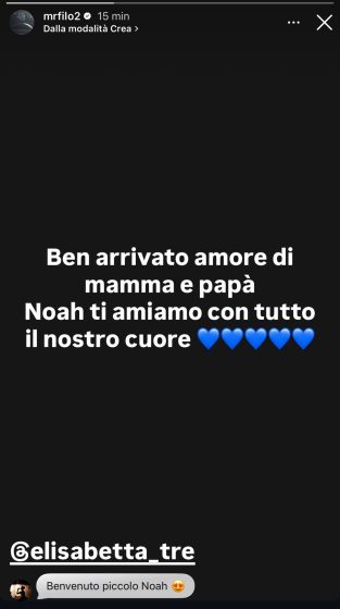 Oggi a distanza di alcuni mesi, quel giorno tanto desiderato e atteso è finalmente arrivato. Nelle scorse ore, infatti, Filomena ha postato sulle sue storie Instagram l’annuncio della nascita del suo bambino, accompagnato da tanti cuori blu: “Ben arrivato amore di mamma e papa Noah ti amiamo con tutto il nostro cuore”.