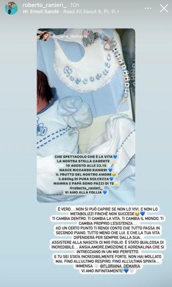 Dopo l’esperienza sul piccolo schermo però, Roberto ha avuto la fortuna di incontrare la donna della sua vita. Floriana De Maria, la neo mamma che ha messo al mondo il loro primogenito e che ha permesso a Ranieri di diventare papà.