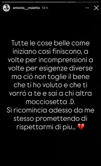 A distanza di pochi mesi però, attraverso il suo profilo Instagram, lui stesso ha dichiarato di essere ritornato single: