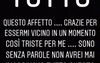 Purtroppo non sto bene per niente… Dormo pochissimo e non mangio quasi nulla, sono molto dimagrito, non mi alleno più. Sinceramente tutta questa storia del tumore e dell’operazione non l’ho presa nel migliore dei modi. Ho molta paura di uscire da questo intervento diverso. Un intervento al cervello è molto lungo e complicato, se avessi delle disabilità dopo l’operazione non penso che riuscirei ad accettarlo… Quindi sì, ho molta paura, sono terrorizzato… Sicuramente diventare padre è uno dei miei desideri più grandi, ma comunque non ho solo un desiderio, ma mille ne ho da realizzare di desideri. Ho solo 29 anni e sono ancora un ragazzo, di cose che vorrei realizzare nella mia vita ce ne sono a migliaia… Il solo pensiero che tutto potrebbe svanire così all’improvviso mi massacra nel profondo, non mi fa dormire la notte. Non mi sarei mai aspettato tutto questo affetto, grazie per essermi vicino in un momento così triste per me… Sono senza parole, non avrei mai immaginato tutto questo amore. Vi voglio ringraziare per tutto l’affetto che mi avete dimostrato, ringrazio ogni persona che ha commentato un mio post, mi ha scritto in direct, mi ha postato nelle sue storie, mi ha scritto su WhatsApp e mi ha chiamato per darmi conforto e affetto. Non mi sarei mai aspettato una cosa del genere… Nonostante non abbia mai fatto niente di male ho sempre pensato di non essere amato dalle persone a causa del mio aspetto: fisico inquietante e la mia voce da orco. Ma tutte queste vostre manifestazioni d’affetto, da me totalmente inaspettate, sono riuscite a riempire il mio cuore di gioia nonostante io stia attraversando il momento più buio della mia vita per cui grazie!
