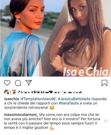 AGGIORNAMENTO – Sotto al nostro post su Instagram è intervento anche Massimo Colantoni, ex fidanzato di Ilaria, che ha commentato: “Ma come, non era colpa mia che lei non aveva più amiche? Non ero io il mostro? Per fortuna la verità con il passare del tempo esce sempre fuori! Il tempo è il miglior giudice!”.
