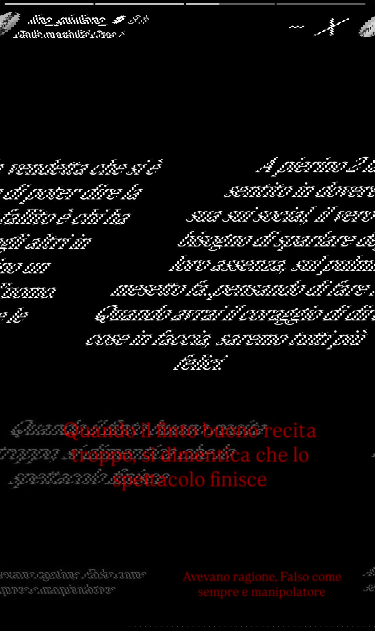 A Pierini 2 la vendetta che si è sentito in dovere di poter dire la sua sui social, il vero fallito è chi ha bisogno di sparlare degli altri in loro assenza, sul pulmino un mesetto fa pensando di fare l’uomo. Quando avrai il coraggio di dire le cose in faccia, saremo tutti più felici. Quando il finto buono recita troppo, si dimentica che lo spettacolo finisce. Avevano ragione, Falso come sempre e manipolatore.