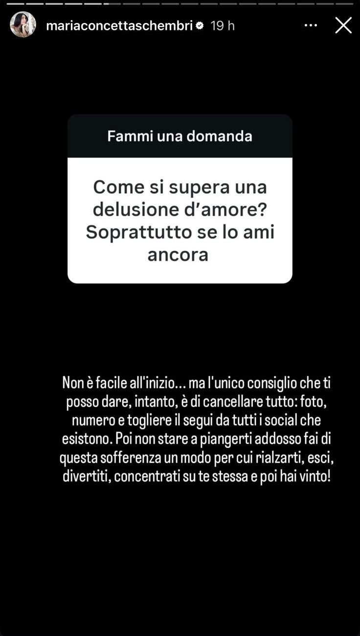La Schembri ha poi dato un consiglio a chi vorrebbe superare una delusione d’amore: