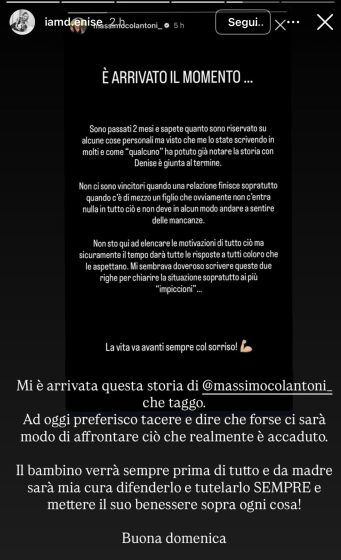 A distanza di tre anni dalla nascita di Edoardo, però, la storia tra Massimo e Denise sembra essere giunta definitivamente al capolinea.