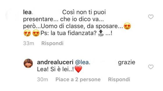 La foto – tratta da uno shooting fotografico realizzato insieme – potrebbe far pensare che si tratti semplicemente di un impegno lavorativo, ma è proprio Andrea a sfatare ogni dubbio a riguardo, confermando – in risposta ad un commento – che Rita è la sua nuova dolce metà: