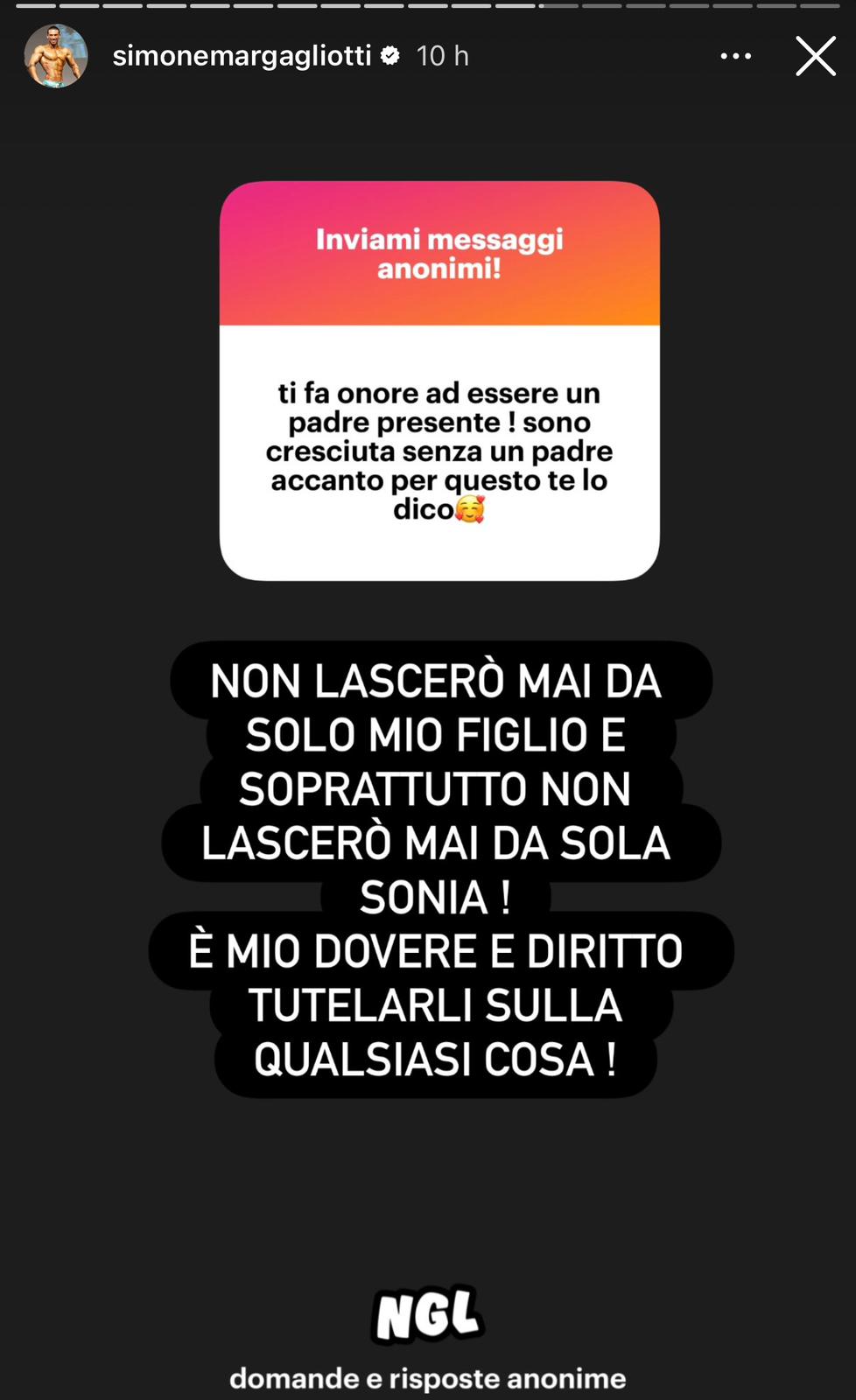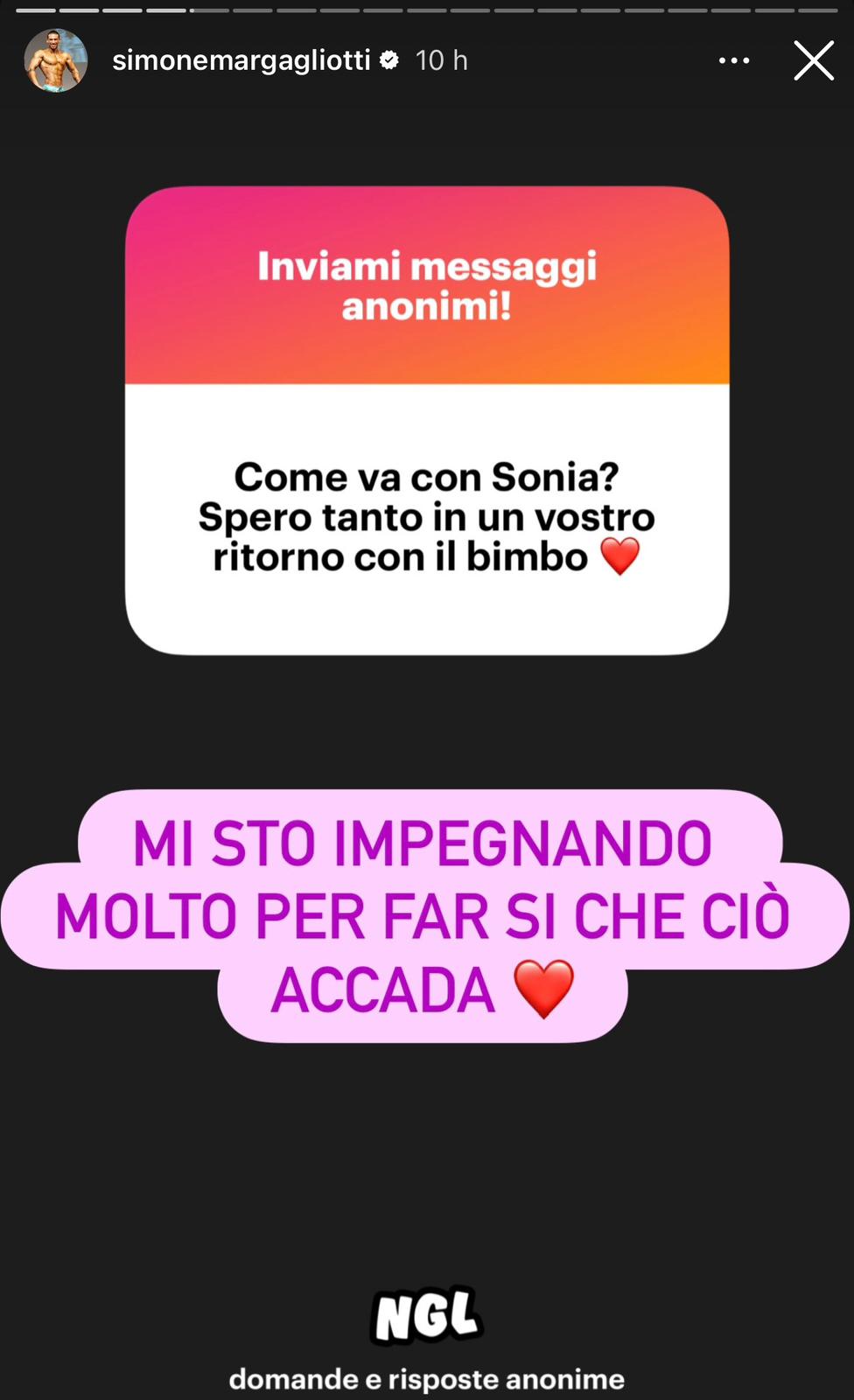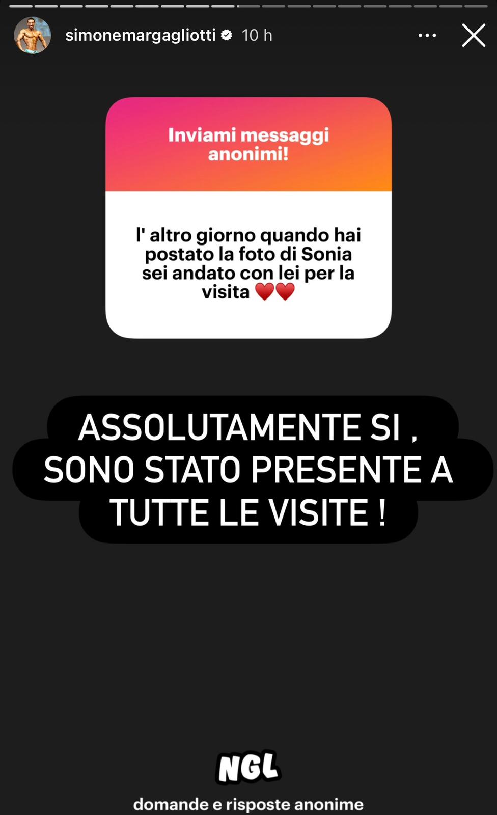 A tal proposito, Simone ha risposto ad alcune domande dei suoi followers in un box su Instagram, chiarendo di voler essere un padre presente e di aver accompagnato Sonia a tutte le visite, come mostrato in una story postata sul suo profilo.