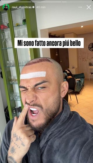Raul ha poi postato una sua foto con i segni del trapianto e ad accompagnare lo scatto una sarcastica didascalia “mi sono fatto ancora più bello”, ha affermato l’ex di Temptation Island in riferimento al trapianto di capelli, che gli darà un nuovo aspetto.