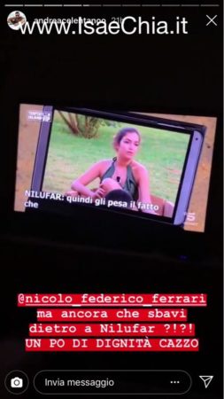 Fresco della sua avventura, Celentano si è lasciato andare a qualche commento sui nuovi concorrenti, e in particolare sull’ex corteggiatore Nicolò Ferrari, che abbiamo ritrovato a Temptation nelle vesti di tentatore. Ad Andrea a quanto pare non è piaciuto particolarmente l’atteggiamento di Nicolò, il quale si è trovato ancora una volta a dialogare con l’ex tronista Nilufar Addati dopo che nel dating show di Maria De Filippi gli aveva preferito Giordano Mazzocchi, e proprio per questi motivi su Instagram ha commentato: