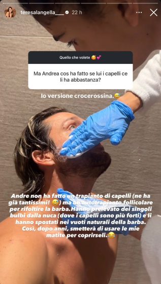 Ultimamente Andrea si è sottoposto ad un intervento di chirurgia estetica, precisamente un autotrapianto di barba. La curiosità a riguardo è stata fortissima e alcuni follower, che credevano che il Dal Corso si fosse sottoposto ad un tricotrapianto, hanno chiesto come mai, dal momento in cui sembra che la chioma di suo marito sia piuttosto folta.