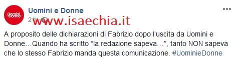 A rendere ancora più complessa la situazione ci aveva poi pensato Sonia, la presunta compagna dell’uomo, che su Facebook aveva svelato il vero motivo che aveva condotto Cilli a Uomini e Donne: la donna aveva raccontato, infatti, di aver bisogno di aiuto economico – un aiuto che proprio Fabrizio, si era offerto di dargli, grazie alla partecipazione al programma – e aveva rivelato che la redazione era al corrente di tutto.