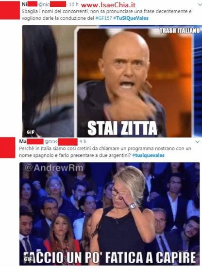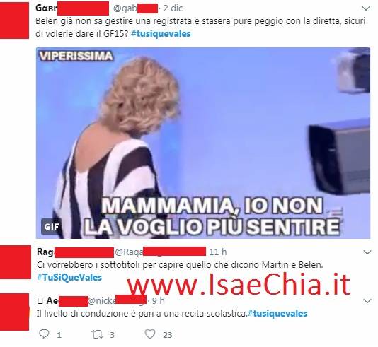 Oltre le esibizioni dei concorrenti, ieri sera ad attirare l’attenzione dei telespettatori è stata la conduzione di Belen e Martin: i due argentini sono stati subissati di critiche per le gaffe e gli errori fatti durante la diretta. Ecco alcuni tweet degli utenti di Twitter: