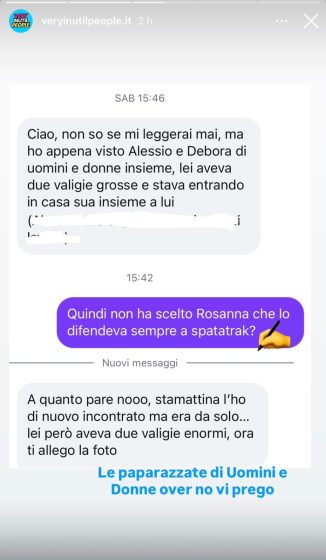 Nonostante ciò, però, la conoscenza tra i due sembra proseguire senza intoppi: la pagina VeryInutilPeople, infatti, ha riportato la segnalazione di un utente che ha avvistato Debora entrare nel portone del palazzo di Alessio con due grandi valigie.