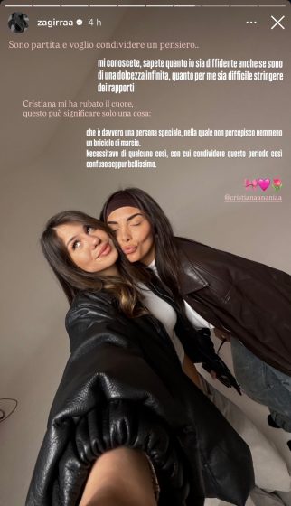 Nelle scorse ore, infatti, le due si sono scambiate dolci dediche sui social. La prima è stata Grazia, che ha postato nelle sue storie uno scatto con Cristiana, spendendo per l’ex tronista siciliana parole molto belle: