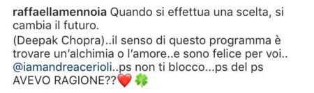 “Quando si effettua una scelta, si cambia il futuro” ha scritto la Mennoia citando lo scrittore Deepak Chopra. L’autrice del noto programma pomeridiano di Maria De Filippi già nelle scorse ore aveva annunciato tramite i social che quest’oggi uno dei 5 tronisti avrebbe compiuto il grande passo, ma vista la scelta dei due ragazzi del pubblico a cui abbiamo assistito qualche settimana fa (QUI il post a riguardo) e la finta scelta di Lorenzo Riccardi avvenuta nel corso dell’ultima registrazione, i fan erano molto reticenti nel credere alle sue parole, pensando che si trattasse dell’ennesimo scherzo.
