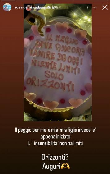 È bastata una storia social dell’ex dama per fare sbottare Sossio. La Bennardo ha pubblicato la torta di una sua amica con una scritta che non sarebbe affatto piaciuta ad Aruta. Sossio infatti l’ha repostata con la seguente didascalia: