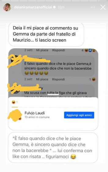 In attesa di scoprire quale altra perla ci regaleranno nelle prossime puntate, a offrircene una ci ha pensato poco fa il fratello di Maurizio, mettendo un like a un post sull’atteggiamento del cavaliere, che non ha fatto altro che avvalorare la tesi sostenuta praticamente da tutti, ovvero che in realtà l’uomo non è mai stato interessato alla dama, ma solo alla… fama!