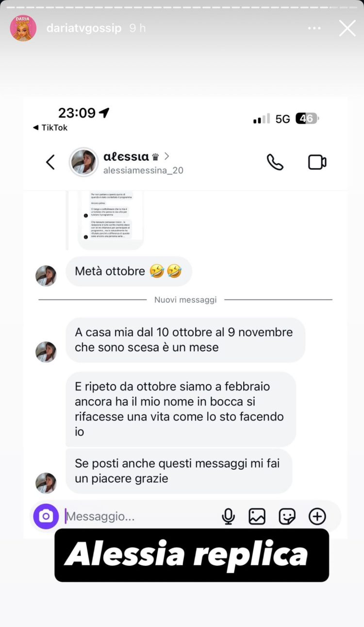 Dopo la storia Instagram, è arrivata la replica della corteggiatrice, nonché un botta e risposta social fra la stessa Alessia e il suo ex: